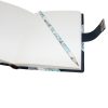 Die Liebe zum Detail zeigt sich in den kleinen, aber entscheidenden Elementen dieses Tagebuchs. Der Buchrücken, die gegenüberliegenden Ecken und die Lasche des Schlosses sind mit blauen Leder eingefasst, was dem Buch einen Hauch von Luxus verleiht.