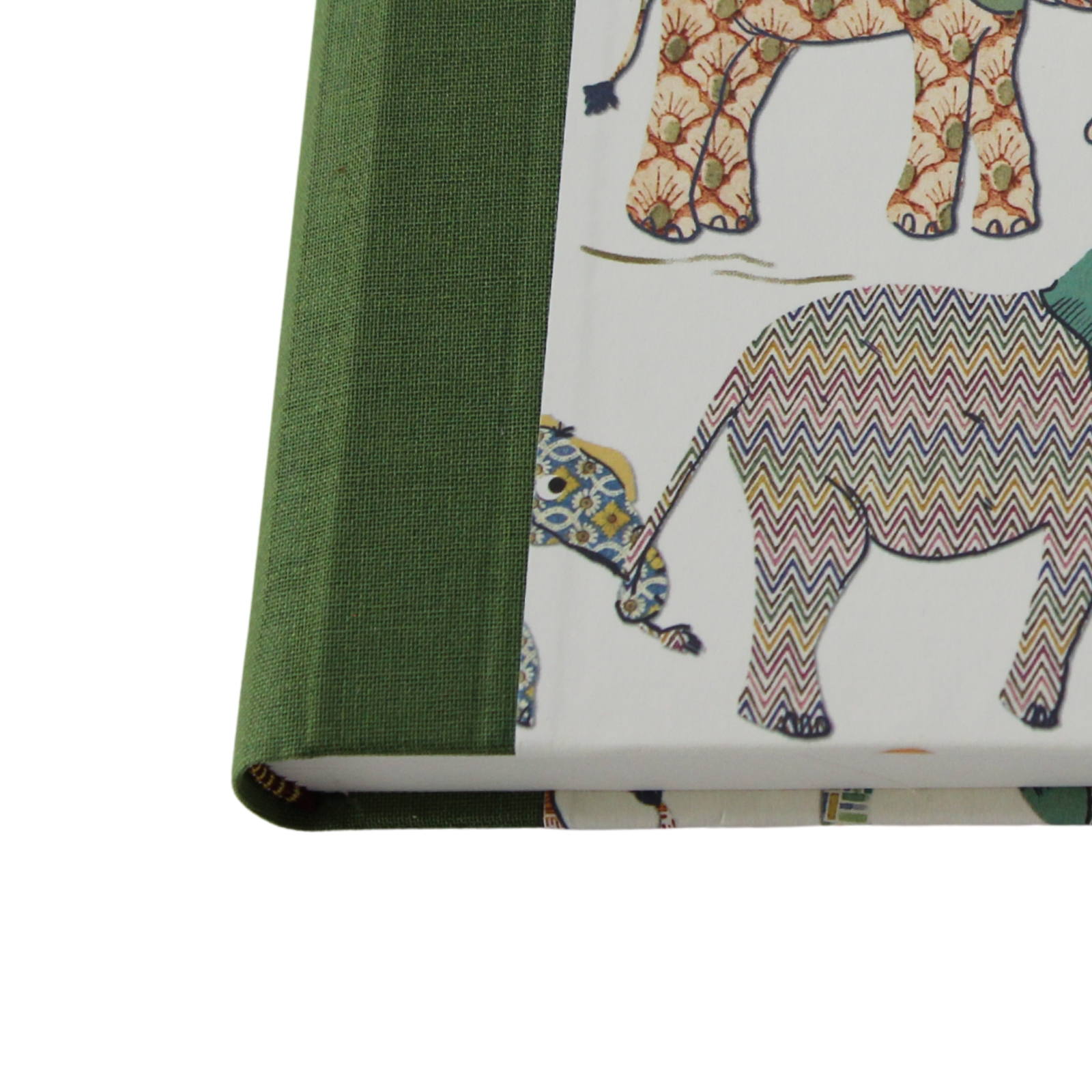 Der Papiereinband ist bedruckt mit bunten Elefanten-Motive. Der Druck ist immer anders, daher ist jedes Buch ein Unikat! Die grüne Buchbinderleinen verleiht dem Tagebuch zudem eine zeitlose Eleganz. Der Einband besteht aus stabiler Kartonage, die Ihre Eintragungen sicher schützt und das Buch langlebig macht.