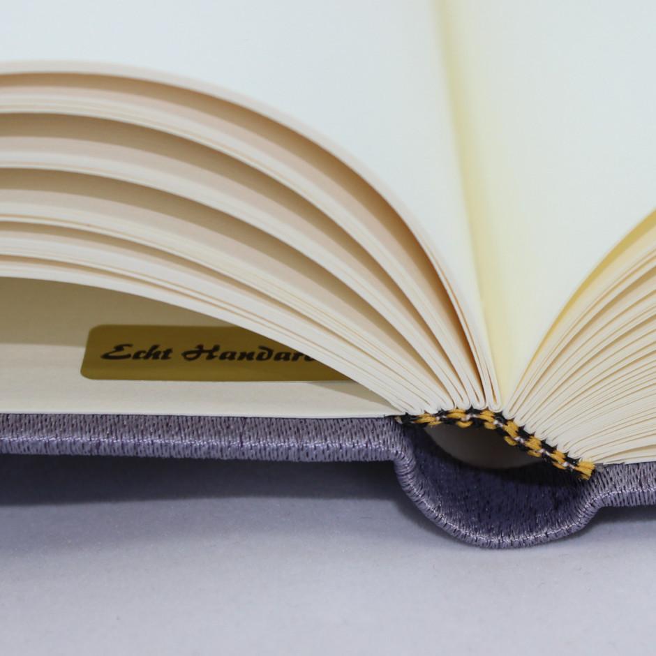 Ein besondere Detail ist der in Fadenheftung gefertigte Block, der für eine lange Haltbarkeit sorgt.