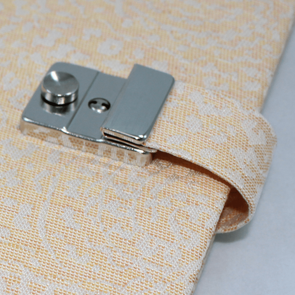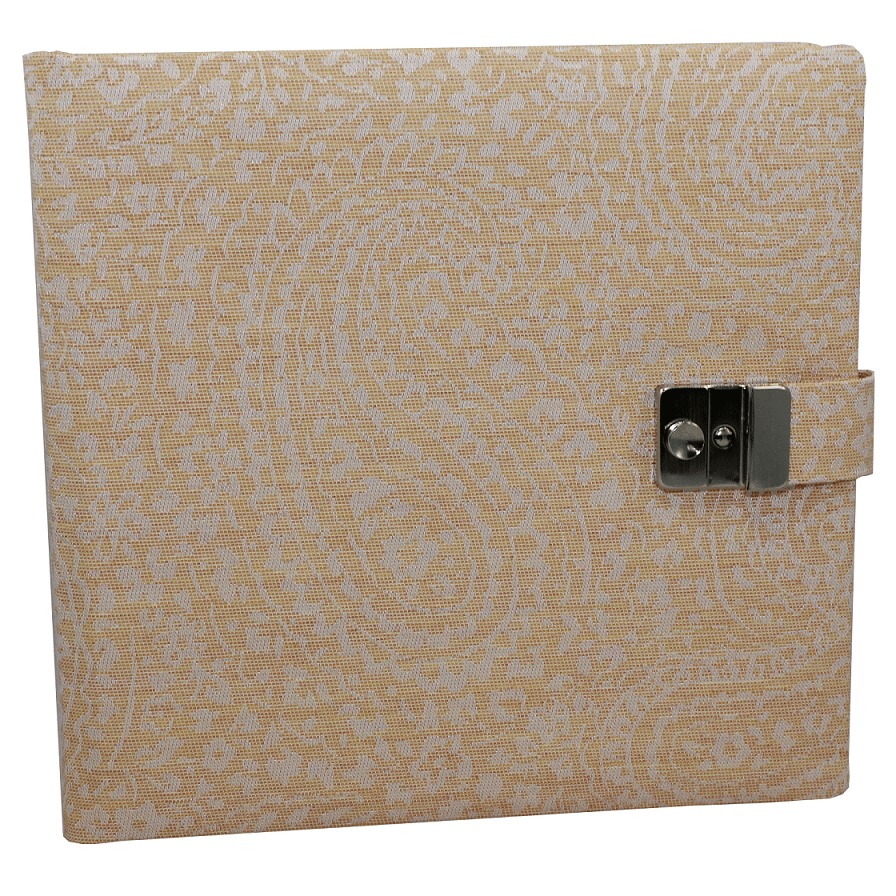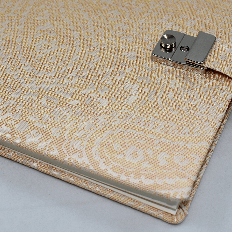 Das Tagebuch mit Schloss Deli apricot, besticht durch seinen in pastelfarbenem apricot gehaltenen Stoffeinband mit feiner Paisley-Musterung und das quadratische Großformat mit viel Platz für persönliche Eintragungen.