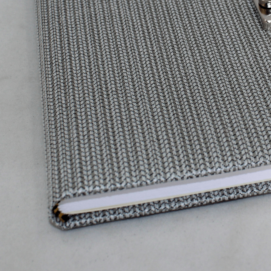 Das Tagebuch mit Schloss Fino in grau überzeugt durch seinen hochwertigen Baumwollstoff mit elegantem, silbergrauen Webmuster.