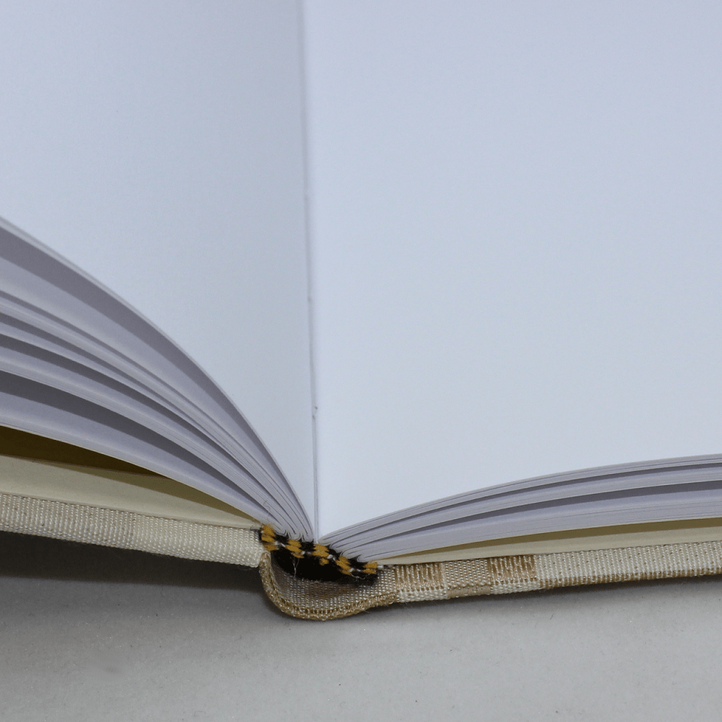 Ein weiteres Detail ist der in Fadenheftung gefertigte Block, der für eine lange Haltbarkeit sorgt. Dieses Merkmal buchbinderischer Handwerkskunst, indem die Blätter mittels Faden verbunden werden, unterscheidet sich ganz klar von weniger haltbaren Produkten mit Klebebindung.
