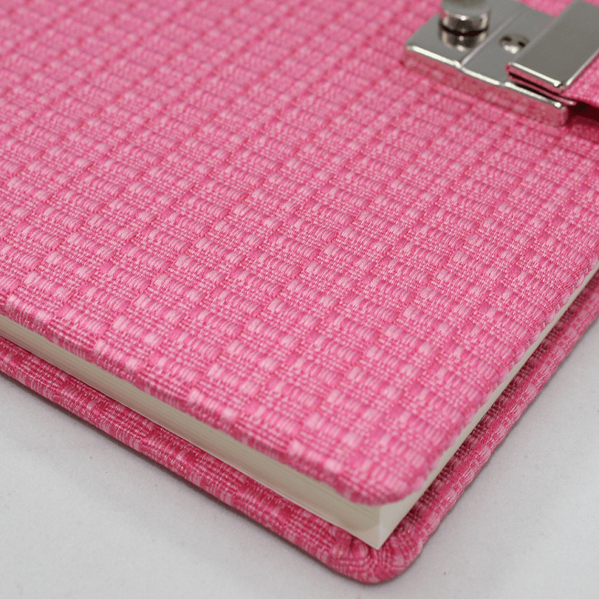 Das Tagebuch mit Schloss Marie überzeugt durch seinen strahlend pinken Stoffeinband mit edler Webstruktur und durch das quadratische Großformat mit viel Platz für persönliche Eintragungen.