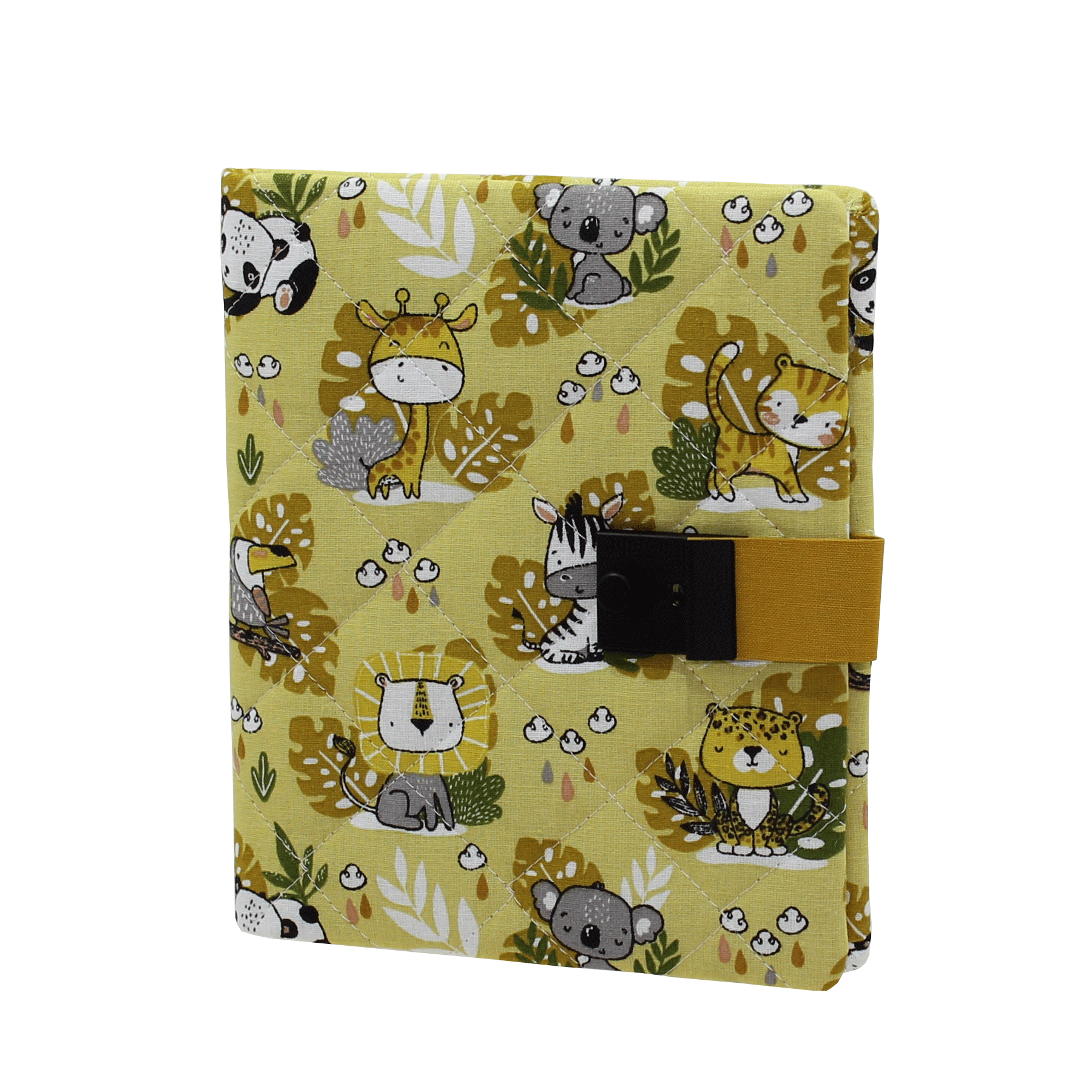 Das Tagebuch mit Schloss Savanna Curry im gesteppten Baumwoll-Stoffeinband wird in Handarbeit nach deutscher Buchbinderkunst gefertigt. Das Tagebuch ist durch seine hochwertige Verarbeitung und die kindgerechten Tiermotive auf curryfarbenem Untergrund für den Einsatz im Kinderzimmer bestens geeignet.