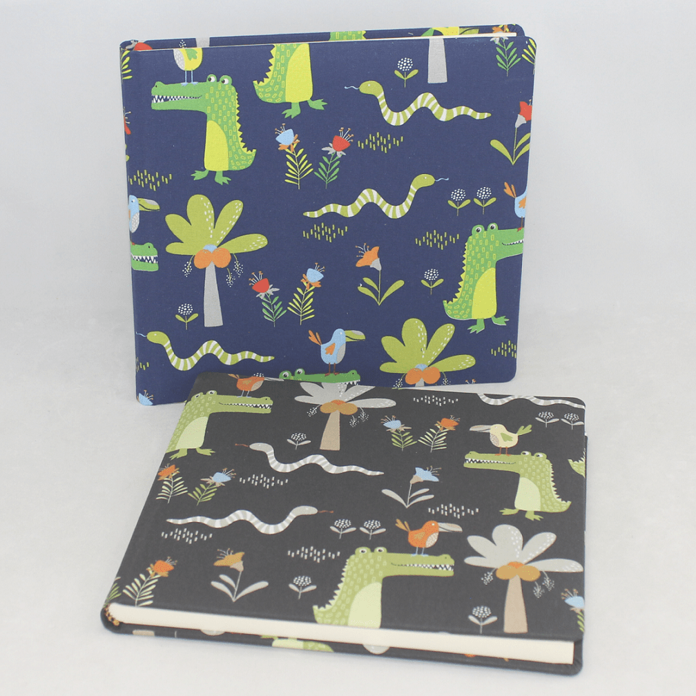 Im Stoffdesign Krokodil führen wir auch ein Fotoalbum und Fotokordelalbum. Gerne fertigen wir Ihnen auch ein anderes Produkt in diesem Design für Sie an. Z.B. als Tagebuch mit Schloss, Notizbuch mit Stifthalter oder CD-Album.
