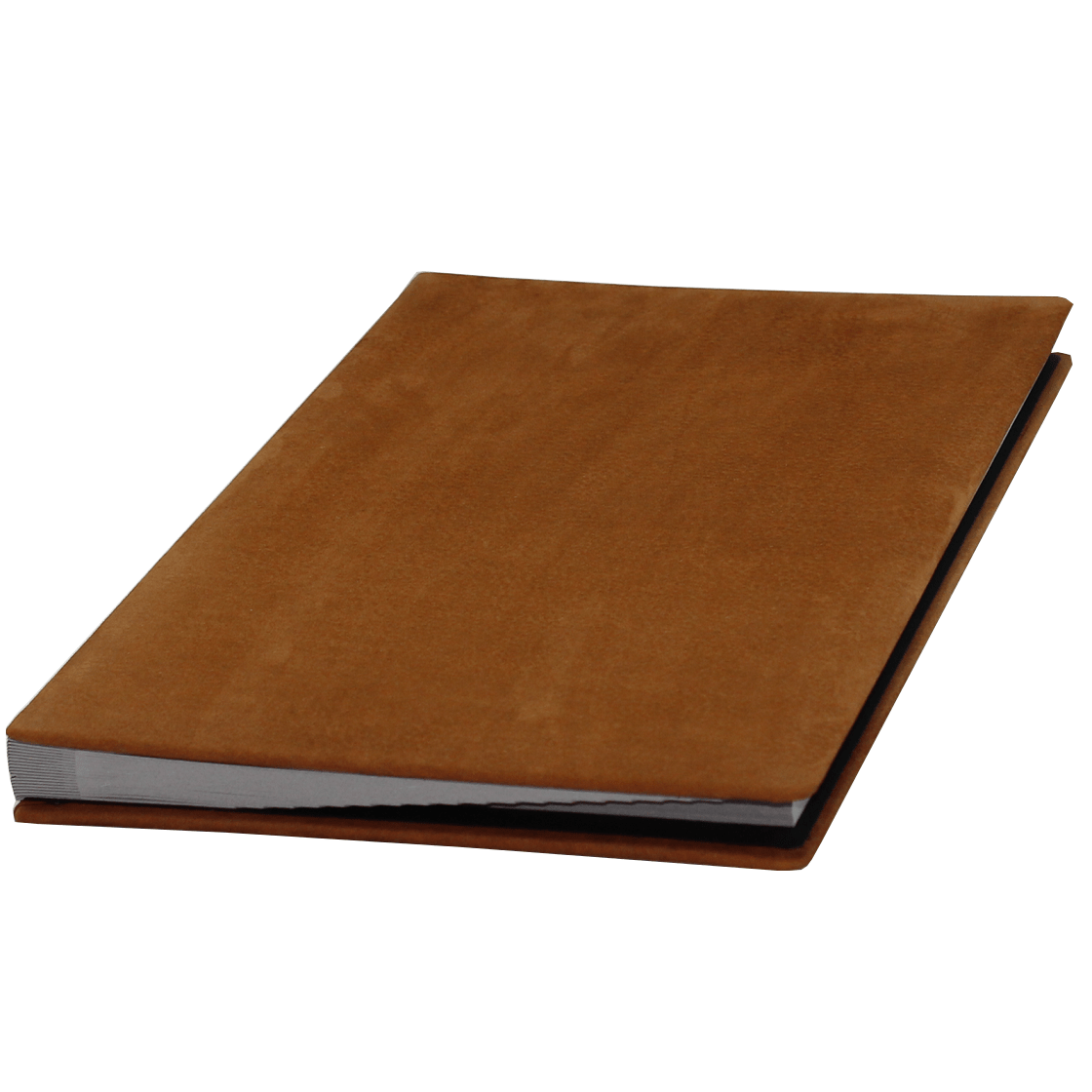• Softcover-Einband aus Nubukleder in Cognac